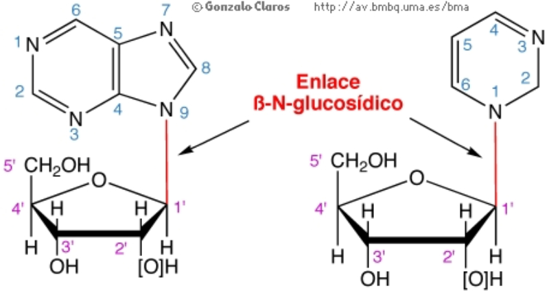 del N-9 (purinas) de la base. La molécula resultante se