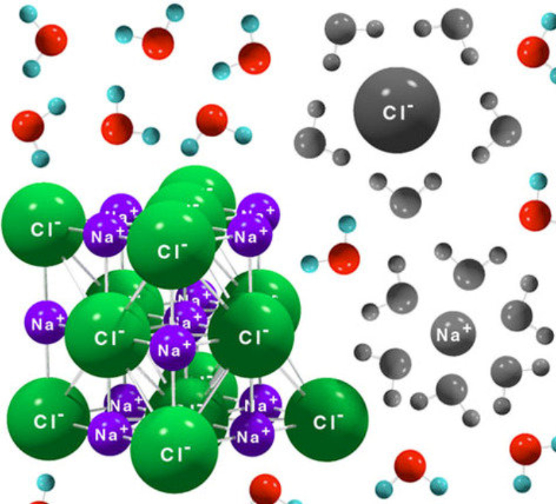 El agua también disuelve compuestos iónicos, como sales,