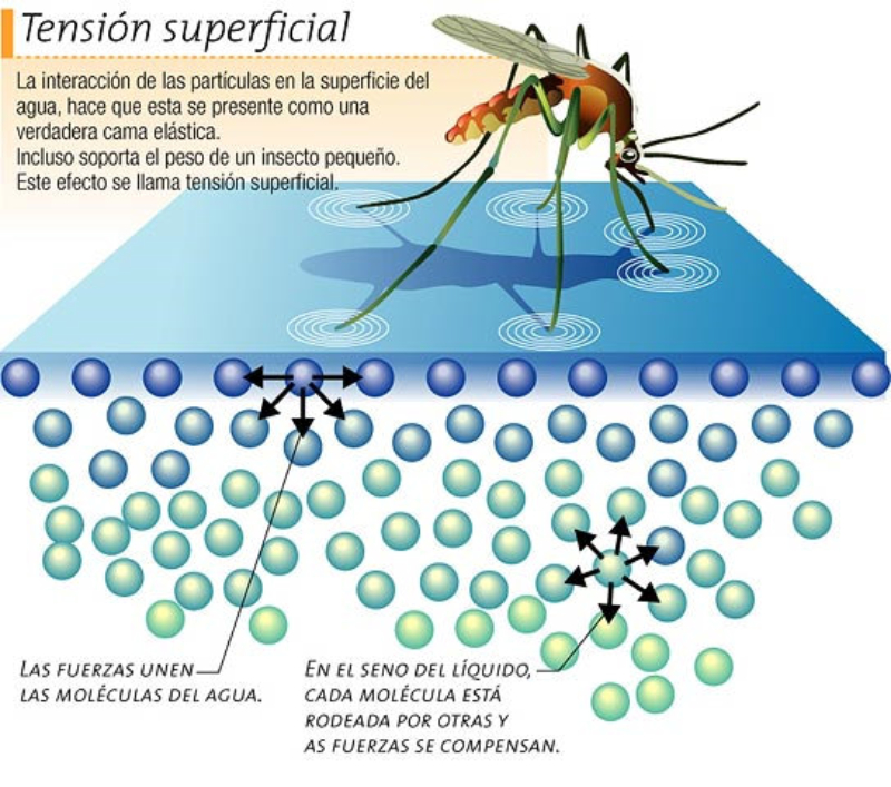 Tensión superficial: permite soportar el peso de