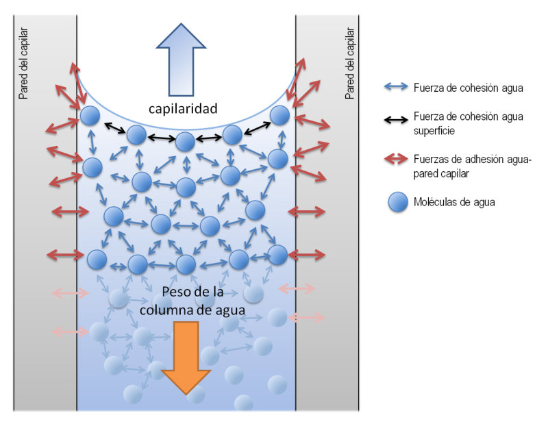 capacidad del agua para ascender por tubos estrechos