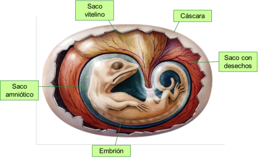 Huevo con cáscara y amnios. Incluye quelonios