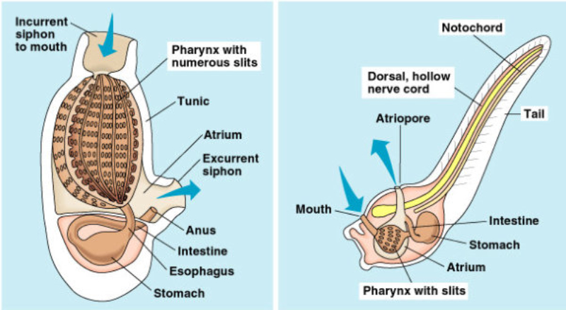 Urocordados: ascidias o tunicados. Presentan una