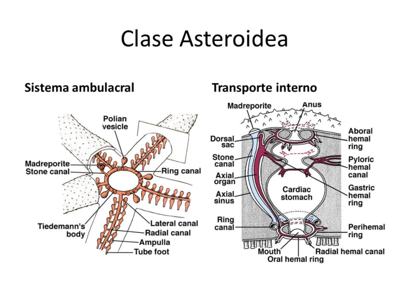 Asteroideos: estrellas de mar. Tienen 5 brazos que