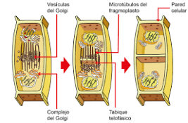 Una vez dividido el núcleo, para completar la división celular debe dividirse el citoplasma y repartir los orgánulos. Este proceso se denomina citocinesis y es diferente en células animales y vegetales.CÉLULA ANIMALLa citocinesis se produce por la aparición de un anillo contráctil en mitad de la célula. El anillo se estrecha y se da un estrangulamiento (surco de segmentación)celular hasta que queda dividida en dos.CÉLULA VEGETALLa presencia de una pared rígida impide el estrangulamiento. Para separar a las células hijas, en el centro de la célula se acumulan vesículas producidas en el aparato de Golgi (fragmoplasto). Estas vesículas vierten los componentes de la nueva pared, formando un tabique que separará a las células hijas.