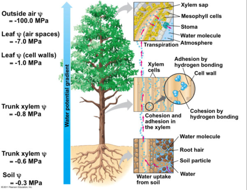 mecanismo de cohesión-tensión, que incluye la transpiración