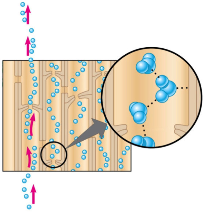 moléculas de agua a las paredes de estos tubos y la cohesión