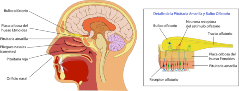 Detectan sustancias químicas disueltas o gaseosas. Son los receptores más primitivos, pues se relacionan con la nutrición y la reproducción. Los más importantes son los órganos del gusto y el olfato.Olfato: detecta sustancias químicas a distancia, tanto en el aire como en el agua. Es el principal sentido del comportamiento social. Los olores determinan un complejo lenguaje químico en muchos animales. Sirven para marcar territorios, establecer jerarquías, trazar senderos, atraer a la pareja sexual (feromonas), etc.Gusto: detecta sustancias químicas por contacto. Muchos invertebrados tienen este sentido en patas, antenas y otras partes del cuerpo. Los vertebrados lo tienen en la boca. En mamíferos se halla sobre todo en la lengua, donde los receptores forman papilas gustativas de distinta forma y especializadas en diferentes sabores.