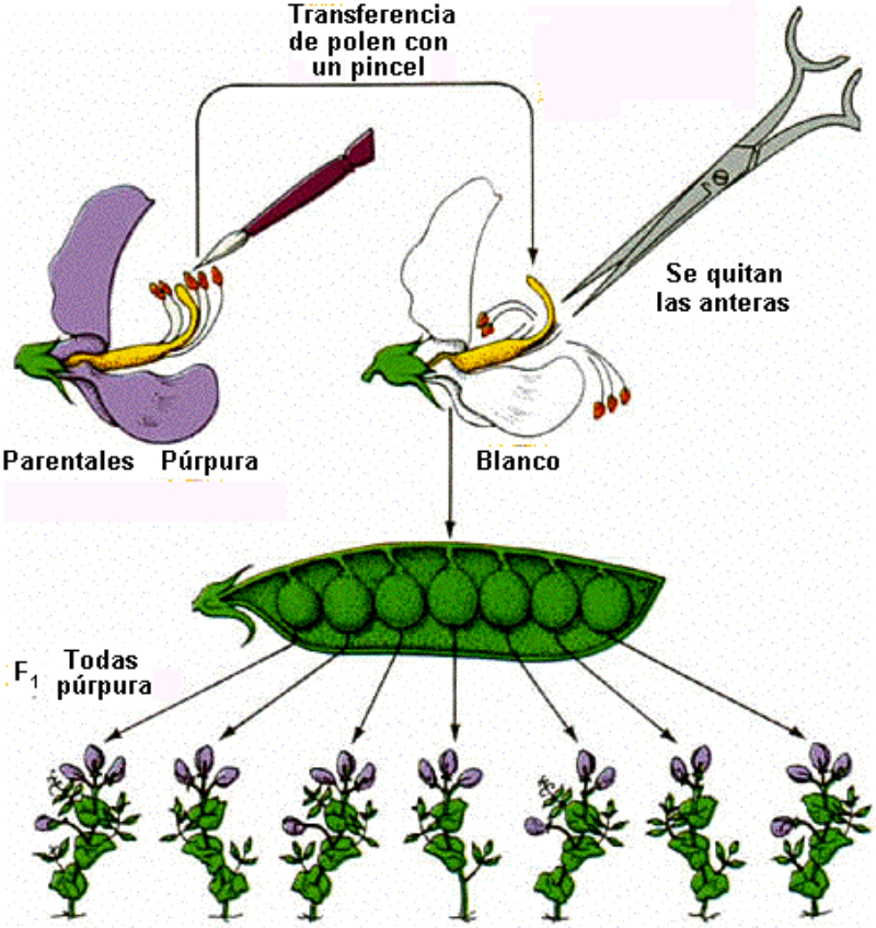 La genética mendeliana o genética clásica hace referencia al estudio de caracteres fenotípicos sencillos, a partir de los cuales se deducen los genotipos. Gregor Mendel (1822-1884) fue un monje agustino que realizó numerosos experimentos en su monasterio de Brno (República Checa). Sus trabajos fueron publicados en 1866, pero tuvieron muy poca difusión. En 1900, tres investigadores (Correns, de Vries y Tschermak) llegaron a las mismas conclusiones que Mendel, redescubrieron sus trabajos y lo colocaron en el puesto de ‘padre de la genética’ que ocupa hoy en día. Los trabajos de Mendel no sólo son importantes por la revolución que representaron sus resultados en biología, sino también por el rigor y el enfoque estadístico que dio a sus experimentos. De todos sus trabajos, los más famosos e importantes son los que realizó con plantas de guisante (Pisum sativum). Mendel eligió siete caracteres para estudiar: color y forma de las semillas, color y forma de las vainas, color y posición de las flores y longitud del tallo. Todos eran caracteres cualitativos, con dos alternativas claras. Ese fue una de las claves de su éxito. Para empezar, Mendel obtuvo razas puras para cada carácter mediante la autofecundación de las plantas durante varias generaciones. Seguidamente hizo miles de cruces entre las plantas de raza pura y analizó matemáticamente los resultados. Fue de Vries, uno de sus codescubridores, el que primero expuso los resultados de Mendel en forma de leyes.