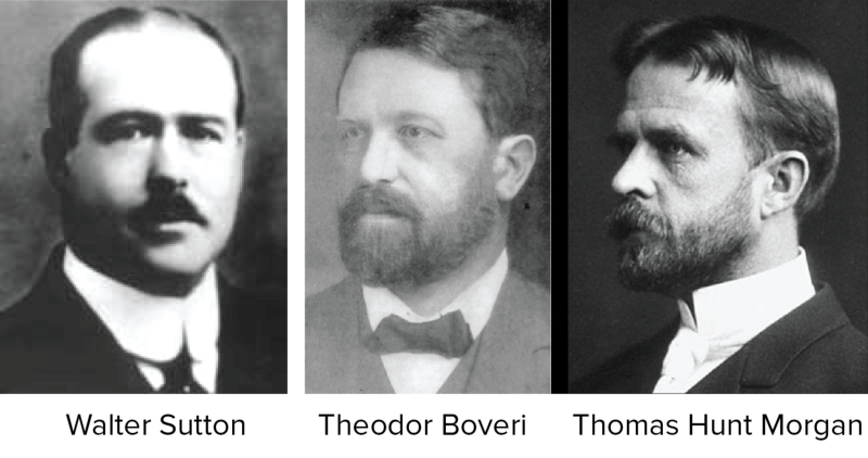 Los trabajos de Mendel quedaron olvidados hasta que en 1900 Correns, de Vries y Tschermak realizaron experimentos similares y “redescubrieron” sus leyes. Sin embargo, el mecanismo exacto de cómo se transmiten los caracteres a nivel celular seguía siendo un misterio. Fueron los trabajos de Theodor Boveri (en Ascaris y erizos de mar) y de Walter Sutton (en saltamontes) los que establecieron definitivamente la llamada teoría cromosómica de la herencia (o teoría cromosómica de Sutton y Boveri), que establece lo siguiente: Los genes se encuentran en lugares específicos dentro de los cromosomas y el comportamiento de los cromosomas durante la meiosis puede explicar las leyes de la herencia de Mendel. La teoría cromosómica de la herencia fue propuesta antes de que hubiera cualquier evidencia directa de que los rasgos se portaban en los cromosomas, y al principio fue controvertido. Al final, se confirmó por medio del trabajo del genetista Thomas Hunt Morgan y sus estudiantes, que investigaron la genética de las moscas de la fruta (Drosophila melanogaster)