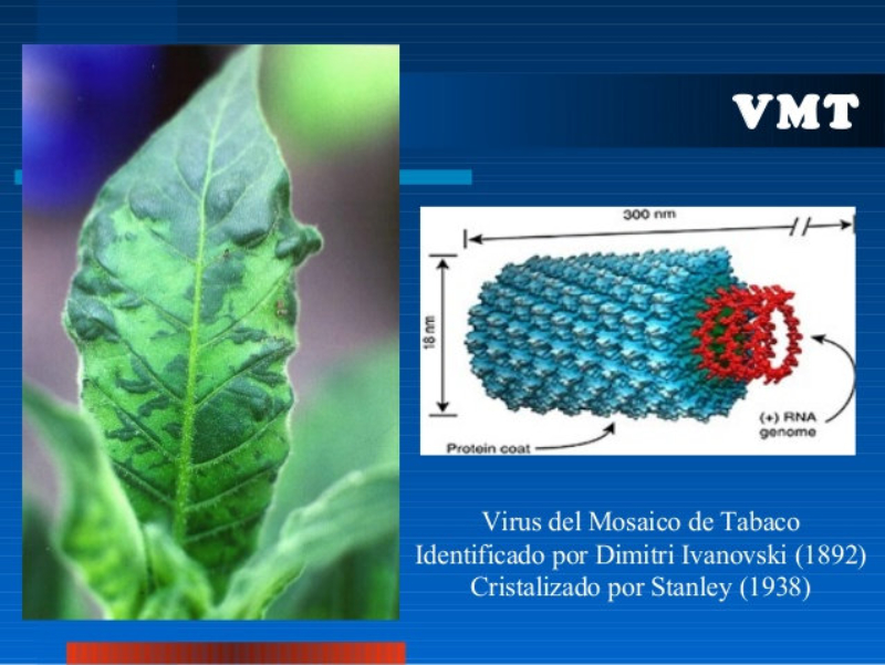 En 1935, Wendell Stanley, aisló el virus del mosaico del tabaco,