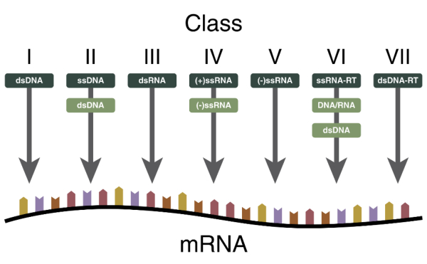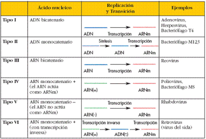 material genético, los virus tienen ácidos nucleicos con características