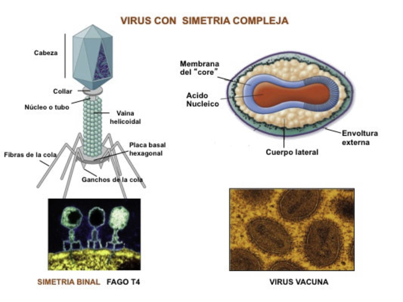Complejas: cápsidas con estructuras adicionales (colas, vainas,
