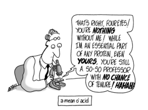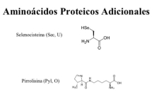 22 aminoácidosEn realidad hay 22 aa proteicos. En 1986 se descubrió la selenocisteína(UGA, Sec, U), con Se, presente en eucariotas y procariotas; en 2002 se descubrió la pirrolisina (UAG, Pyl, O), sólo en procariotas, principalmente arqueas.