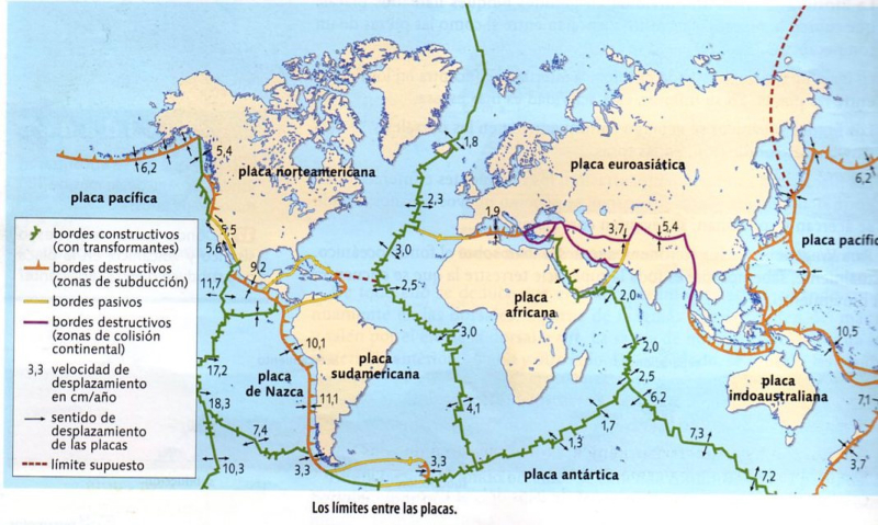 placas lentas (2 cm/año) y otras muy rápidas (hasta unos 18