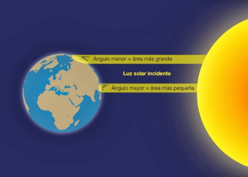 En zonas más al norte o más al sur, los rayos inciden de forma