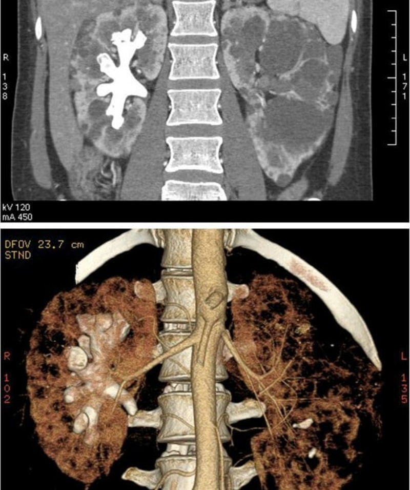 Radiografía de una persona con 3 riñones.