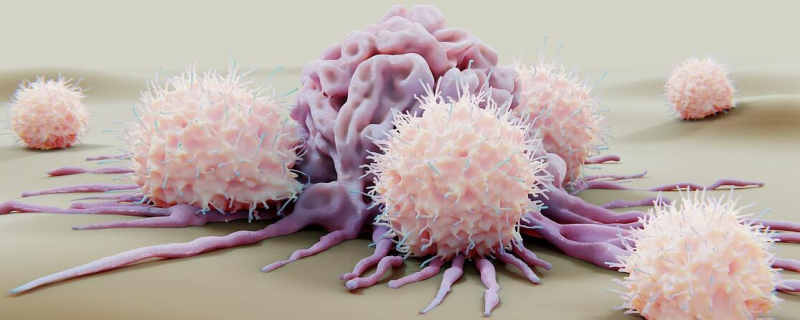 Célula cancerígena atacada por glóbulos blancos