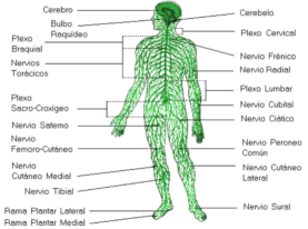 el sistema nervioso: encéfalo, médula espinal y nervios.