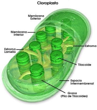 La célula eucariota (del griego εû eu (“bueno”, “bien”) y κάρυον karyon (“nuez”, “núcleo”) apareció por evolución de la procariota. Posee una estructura muy compleja. Como su nombre indica, tiene núcleo verdadero, es decir, rodeado de membranas, y también presenta otros orgánulos membranosos. Pueden tener o no una pared, pero su composición es muy diferente de la de las procariotas. El ADN está compuesto por numerosas cadenas lineales (cromosomas) y rodeado de membranas (eucariota). Existen 2 tipos de células eucariotas: la célula animal y la vegetal. Son muy similares, pero presentan ciertas estructuras exclusivas. La célula vegetal tiene una pared formada de celulosa (fibra), por lo que tiene una forma fija y, muchas veces, poliédrica. En su citoplasma aparecen vacuolas (a veces una sola que ocupa casi todo el citoplasma) y cloroplastos (orgánulos que realizan la fotosíntesis). Por su parte, la célula animal carece de pared, vacuolas o cloroplastos, pero posee centríolos y puede tener cilios y flagelos, inexistentes en las vegetales.