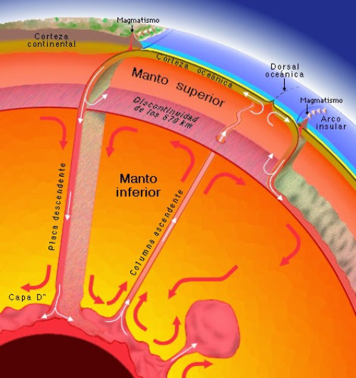 Es una zona de transición entre el núcleo externo y el manto. Aquí se da el intercambio de calor entre el núcleo y el manto, originando las corrientes de convección y, poco a poco, el núcleo externo se va solidificando. El calor del núcleo escapa a veces de forma brusca, dando plumas de magma o plumas de calor, que pueden llegar a la corteza, donde forman los puntos calientes, con gran actividad volcánica (Hawái, Yellowstone).