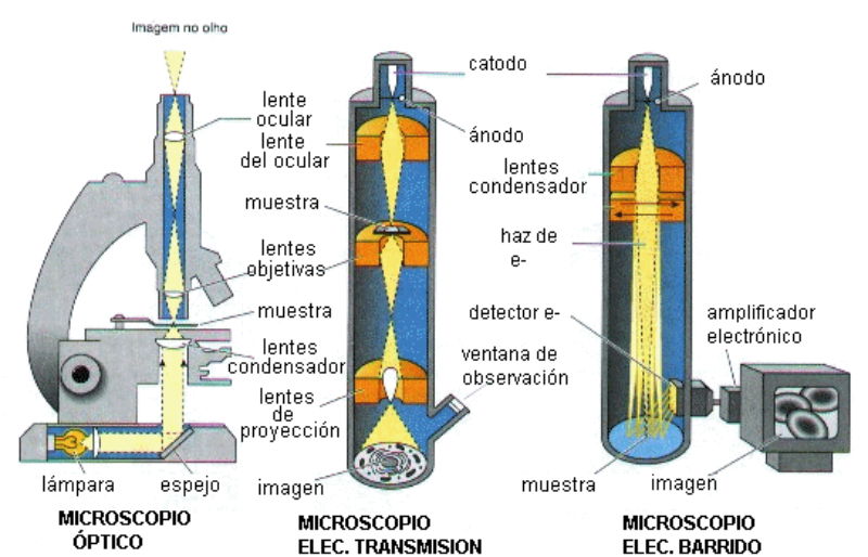 Microscopio electrónico: emplea electrones y