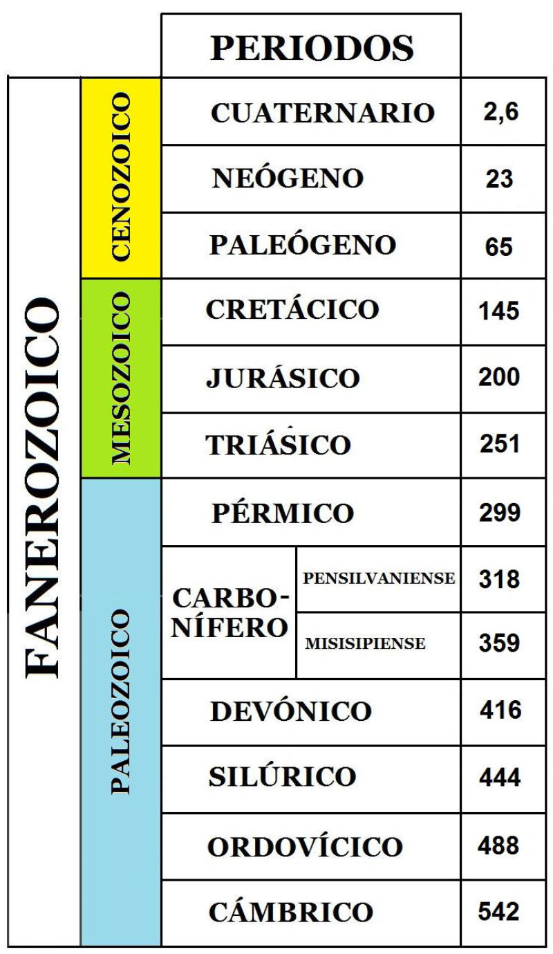 Este eón ha sido dividido en 3 eras: Paleozoico,