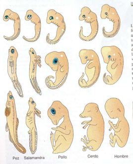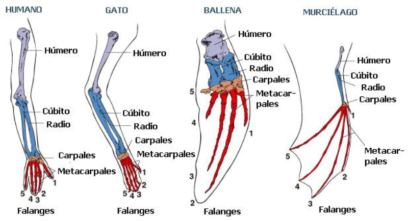 A pesar de las evidencias científicas, hay personas de otros ámbitos que defienden que la evolución no es cierta. Uno de los argumentos que se utiliza es que la evolución es sólo una teoría. En ciencia, una teoría es un conjunto de principios demostrados por las observaciones y experimentos. Es algo perfectamente contrastado y que se asume como cierto. La teoría de la relatividad es una teoría. La teoría celular es otra teoría. La teoría atómica es otra teoría. La teoría de la evolución es un hecho. Sin embargo, la evolución es un proceso que, habitualmente, transcurre muy lentamente, a los largo de miles o millones de años. Por ello es difícil observarla directamente. No obstante, existen multitud de pruebas que la confirman. A1. PALEONTOLOGÍA El registro fósil es una prueba a favor del cambio de las especies con el tiempo, aunque, pese a su importancia, ni es la única, ni es la más poderosa. De hecho, aunque no hubiera un registro fósil la evolución sería un hecho innegable. Las especies de épocas anteriores eran diferentes de las actuales y de las de otras eras. Las especies posteriores se parecen a algunas especies anteriores. Existe una sucesión de formas bien documentada. Hay que tener en cuenta que el proceso de fosilización es complejo y la mayoría de organismos vivos nunca fosilizan. Por ello se habla de lagunas en el registro fósil. Una expresión equivocada: nunca podremos hallar los fósiles de todos los seres vivos que han habitado el planeta. Además, sólo se ha hallado una pequeña porción de todos los fósiles que deben existir: el registro fósil aumenta constantemente y aporta nuevos datos y evidencias. Por otra parte, las técnicas de datación son cada vez mejores, permitiendo un estudio más detallado de cada época de la historia terrestre. Entre los hallazgos más llamativos de la paleontología están las llamadas formas intermedias, organismos con características intermedias entre las de dos grupos diferentes. Un ejemplo muy conocido es el del Archaeopteryx, un fósil de reptil que presenta plumas y otras características de aves. O el Tiktaalik roseae, un pez con caracteres de tetrápodos. Incluso existen series muy completas de fósiles que han permitido seguir la línea evolutiva de organismos como el caballo o el ser humano. Otra información que aporta la paleontología son datos sobre las extinciones o desaparición de especies, algunas de ellas masivas, como la de finales del Pérmico, que fue la mayor de todas, o la de finales del Cretácico, en que se extinguieron, entre otros organismos, los dinosaurios. A2. ANATOMÍA COMPARADA (PRUEBAS MORFOLÓGICAS) El estudio comparado de la anatomía entre organismos revela semejanzas que pueden explicarse por la presencia de un antepasado común. Aquellos órganos que son diferentes pero que tienen semejanzas por tener un origen común se llaman órganos homólogos. Es el caso de las extremidades de los tetrápodos, los vertebrados terrestres. Todos ellos (la pata de un reptil, el ala de un murciélago, la aleta de una ballena o un brazo humano) tienen la misma estructura interna. Al mismo tiempo, existen también especies muy separadas evolutivamente que se tienen que adaptar al mismo medio, y por lo tanto desarrollan estructuras similares, los llamados órganos análogos, que son patrones anatómicos que han tenido éxito en un medio concreto y por eso varias especies lo imitan. Estos órganos que desempeñan la misma función, pero tienen una constitución anatómica diferente, como el ala de un insecto y el ala de un ave, y representan un fenómeno llamado convergencia adaptativa, por el cual los seres vivos repiten fórmulas y diseños que han tenido éxito. En muchos seres vivos existen órganos atrofiados, no funcionales, que aparecen en antepasados antiguos perfectamente funcionales, pero que con el transcurso de las generaciones dejaron de ser útiles; a estos órganos se les denomina órganos vestigiales. Así, los huesos de las caderas en serpientes, o los músculos que ponen los pelos en erección en humanos. A3. EMBRIOLOGÍA Relacionadas con las pruebas anatómicas, el estudio de los embriones de los vertebrados nos da una interesante visión del desarrollo evolutivo de los grupos de animales. Las primeras fases de ese desarrollo son iguales para todos los vertebrados, siendo imposible diferenciarlos entre sí; sólo al ir avanzando el proceso cada grupo de vertebrados tendrá un embrión diferente al del resto, siendo tanto más parecidos cuanto más emparentadas estén las especies. A4. BIOGEOGRAFÍA La biogeografía es la ciencia que estudia la distribución de los seres vivos en la Tierra. Las pruebas biogeográficas se encuentran repartidas por todo el planeta y consisten en la existencia de grupos de especies más o menos parecidas, emparentadas, que habitan lugares relacionados entre si por su proximidad, situación o características, por ejemplo, un conjunto de islas, donde cada especie del grupo se ha adaptado a unas condiciones concretas. La prueba evolutiva aparece porque todas esas especies próximas provienen de una única especie antepasada que originó a todas las demás a medida que pequeños grupos de individuos se adaptaban a las condiciones de un lugar concreto, que eran diferentes a las de otros lugares. Son ejemplos característicos de esto los pinzones de las islas Galápagos que fueron estudiados por Darwin; los Drepánidos, aves de las islas Hawái, o las grandes aves no voladoras distribuidas por el hemisferio sur, los ñandúes sudamericanos, las avestruces africanas, el pájaro elefante de Madagascar (extinguido), el casuario y el emú australianos o el moa gigante de Nueva Zelanda (también extinguido). A5. BIOQUÍMICA Las pruebas más recientes derivan del estudio comparativo de las moléculas orgánicas que forman parte de todos los seres vivos. Así, se ha comprobado que: El ADN es la molécula en la que llevan codificada su información