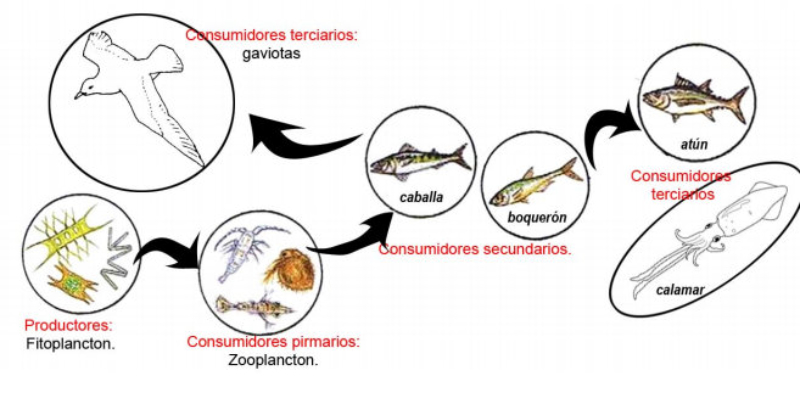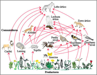 Una cadena trófica es una serie ordenada de organismos en la que cada uno es comido por el siguiente. Las cadenas tróficas empiezan siempre por un productor y contienen flechas que indican la dirección en que circula la materia y la energía.