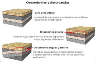 superiores) y la discordancia angular (debida a