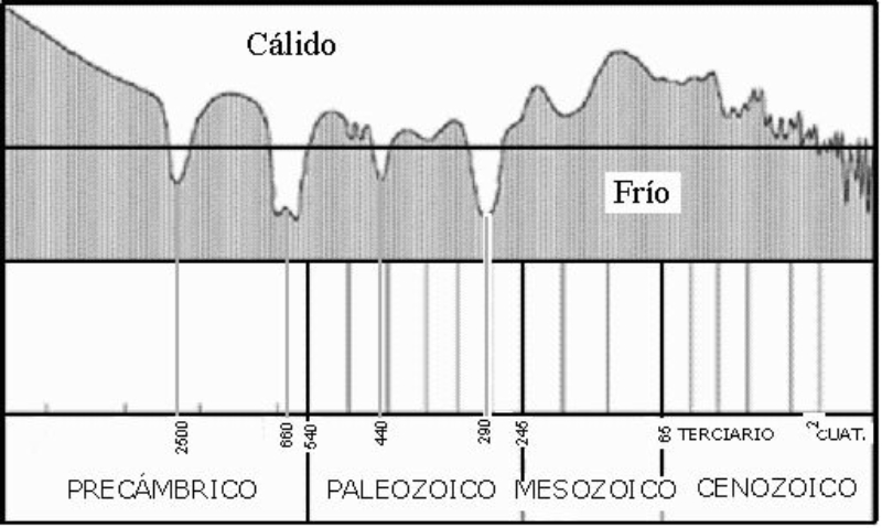 diferentes épocas geológicas en orden, pero no se