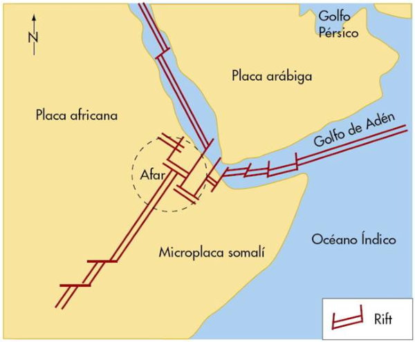 Los volcanes de las dorsales son fisurales (la lava sale por grietas) y tienen erupciones tranquilas. La mayoría está bajo los océanos y forman litosfera oceánica, pero también los hay continentales como el Kilimanjaro.