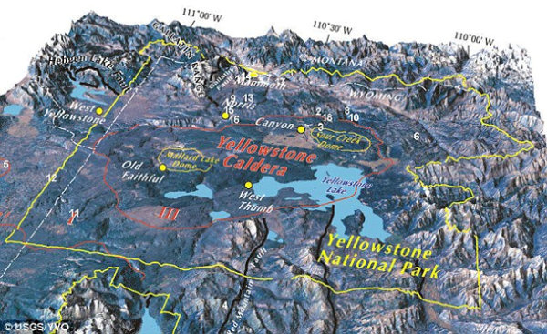Los supervolcanes son volcanes cuya erupción fue tan violenta que destruyó su propio cráter, dejando una inmensa depresión circular llamada caldera volcánica.Un caso espectacular es Yellowstone, en EEUU, un volcán alimentado por un punto caliente. Ha tenido tres erupciones importantes: hace 1.800.000 años, 1.200.000 años y 600.000 años.