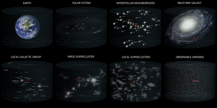 En el universo, las galaxias se agrupan en grupos llamados cúmulos, éstos en otros mayores, supercúmulos, y los supercúmulos en inmensos filamentos.Si pudiésemos observar el universo en su conjunto, el aspecto que tendría sería el de una especie de telaraña tridimensional, con inmensos vacíos y grandes filamentos de galaxias.Todo el conjunto está sostenido por la gravedad, proporcionada en su mayor parte por la materia oscura, que actúa como una especie de “pegamento” entre enjambres de galaxias.